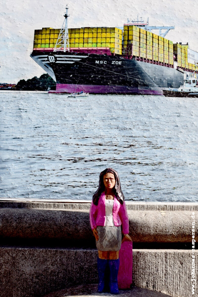 Vanessa vor der MSC Zoe, HamburGGalerie,Rödingsmarkt 27, 20459 Hamburg