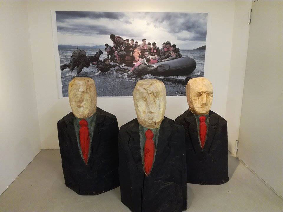 Der Plan: Drei Halbfiguren werden aufgebaut ( Halbfiguren wie Tagesschausprecher oder Korrespondenten oder Experten) dahinter ein TV Screenshot „Anlandende Flüchtlinge“. Titel: „Vor Ort“. Zusätzlich kann ein PC aufgebaut werden auf dem in Endlosschleife die Filmchen gezeigt werden können. Ob das möglich ist, werde ich noch sehen…“