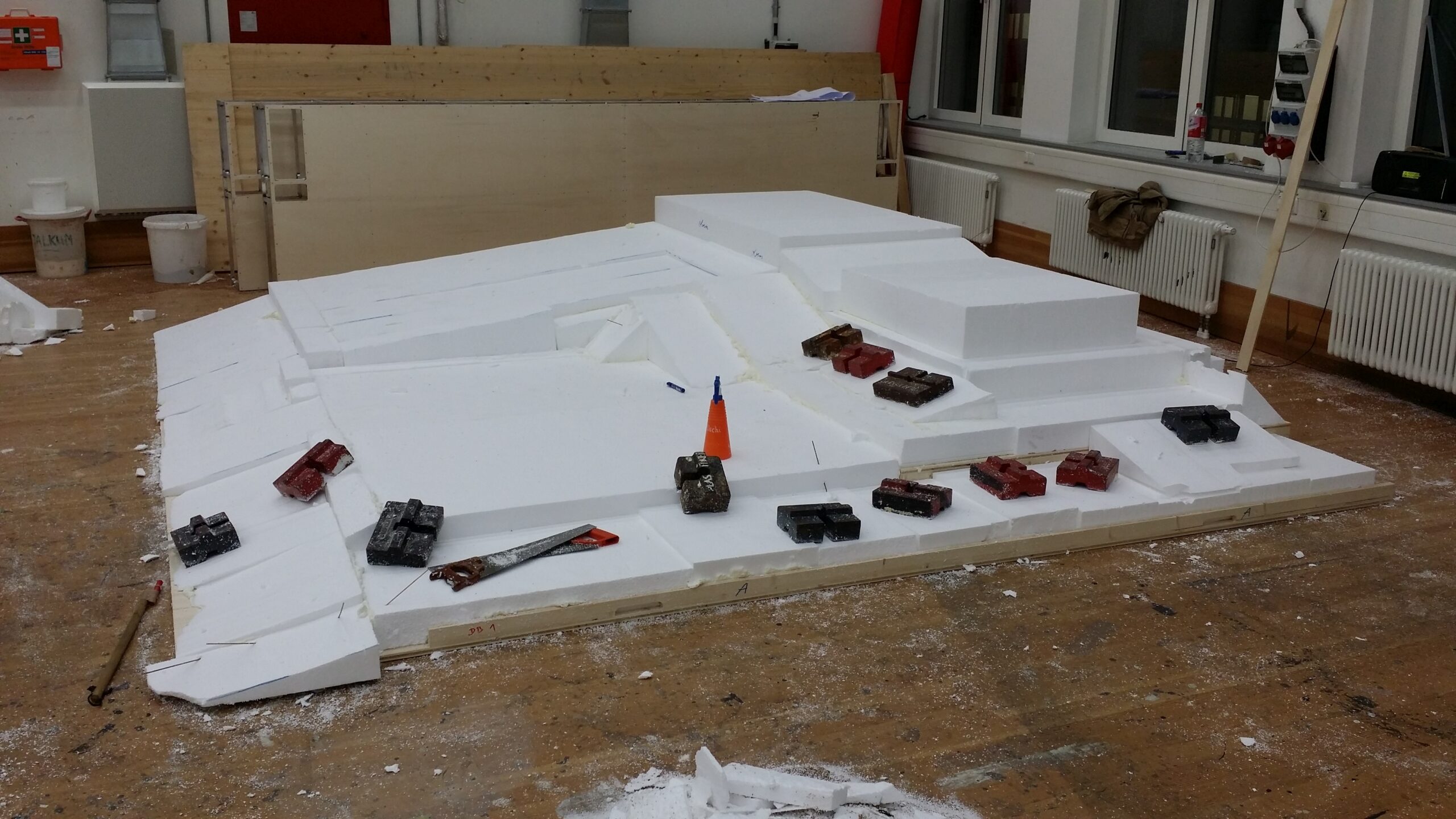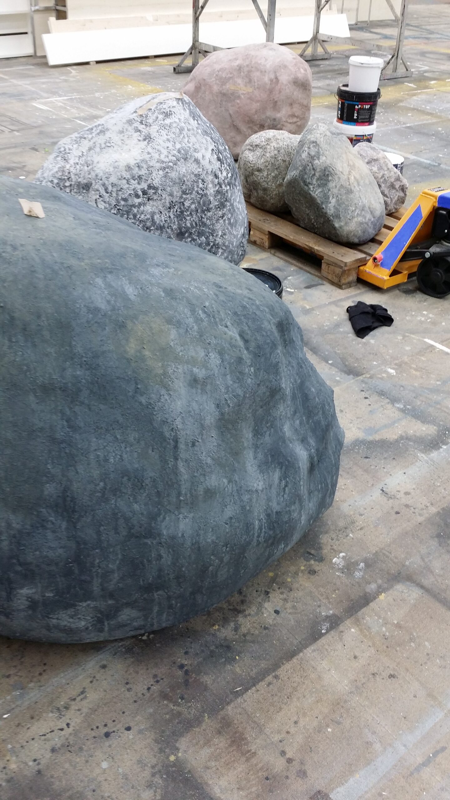 In den Tagen zwischen Weihnachten und heute war ich nicht ganz faul!Die Städtischen Bühnen Frankfurt bestellten mich zu einem Eilauftrag. Findlinge und Dünenlandschaften aus Styropor! Höchst interessant! So könnte ich auch bald meine Skulpturen in noch größeren Dimensionen herstellen….