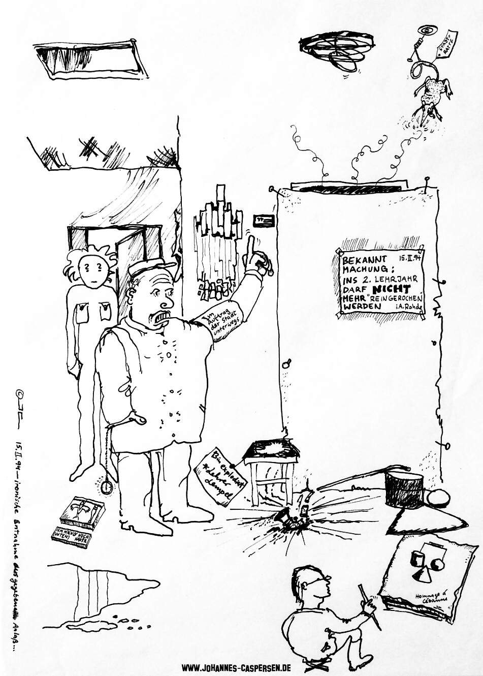 Der Anlaß für die nun gezeigten Cartoons, war ein Brand in den Räumen des 2. Lehrjahres.